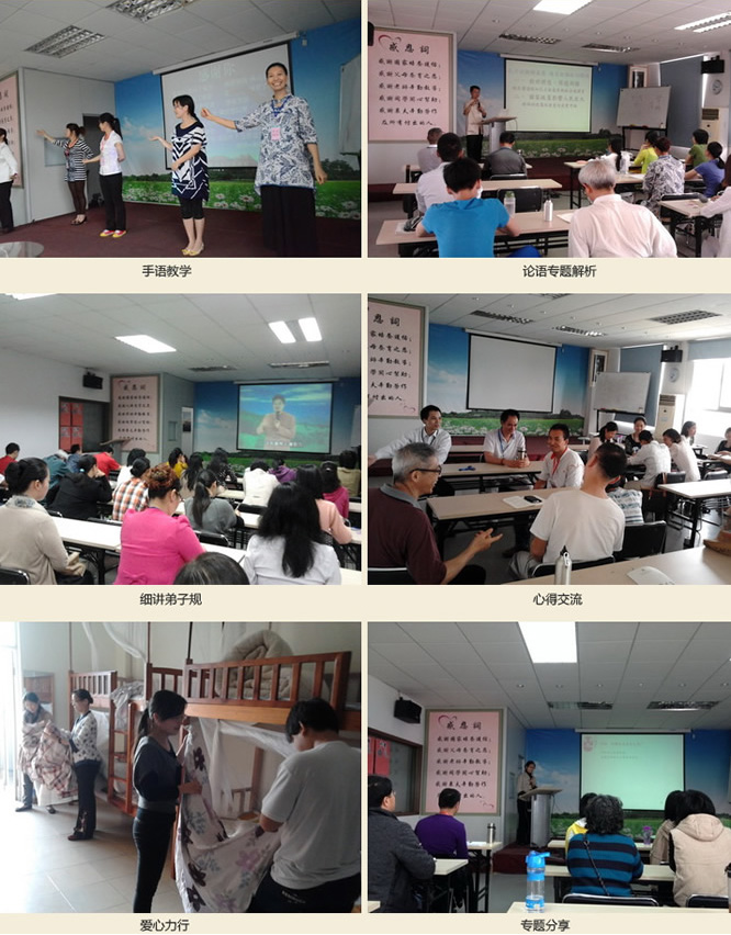 上课内容:细讲弟子规、论语专题解析、心得交流、手语教学、德育动漫、专题分享、爱心力行…